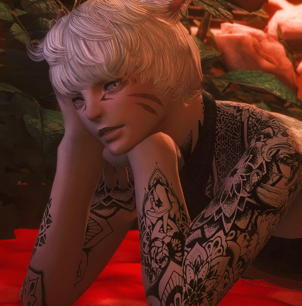. SUN - SEEKER . The first thing of note about his appearance would be his albinism, as denoted by his skin, hair, and eyes (which are often unfocused). He looks to be in his late twenties to his early thirties, underweight, and with deep, dark bags under his eyes. The rest of his skin remains entirely blemish free aside from the tattoos that adorn his torso.Having long since abandoned the typical nomenclature assigned to Seeker males, alongside abandoning any other tribal traditions, he refers to himself as “Zallah” and by that alone.Pronounced as 'Zah - Lah.'. SWEET - TALKER . Gregarious. Extrovert. Social butterfly. One of his favorite things to do is talk, and talk, and talk. Provided you’ve piqued his interest, he’ll ask plenty of questions.He enjoys playing matchmaker in some cases, in others a precarious wallflower is a particular delight. Zallah rarely sees much sense in social sensibilities, encouraging those around him to indulge in impulse, on hedonism and urge. To live life to the absolute fullest to one’s desires.Additionally, should this arouse any kind of... conflict, well... he’s more than happy to fall back and watch it all unfold before him.. ENIGMATIC . Prolonged or recurrent interactions with Zallah would reveal that his interest is ever-waning and fickle like a little tyrannical god. The smallest of things can catch his attention and lose it just as quick. His fixations dwell on the unnatural, the broken, the outcast--- Shiny, pretty new toys to tinker and play with.Simply put, he likes to have control and he'll take as much as you give him. Intentionally or otherwise. In order for him to give it up you’ve got to play an enticing game of back and forth, but show him an ounce of weakness and he’ll be right quick to snatch that mile.That isn’t to say there haven’t been those that have somehow truly befriended him. Though, fair warning the path is winding and tricky to navigate should that be your intention.